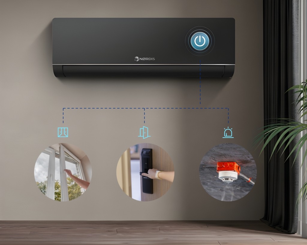 Oro kondicionierius gali būti automatiškai įjungiamas arba išjungiamas pagal durų ar langų atidarymo būseną.