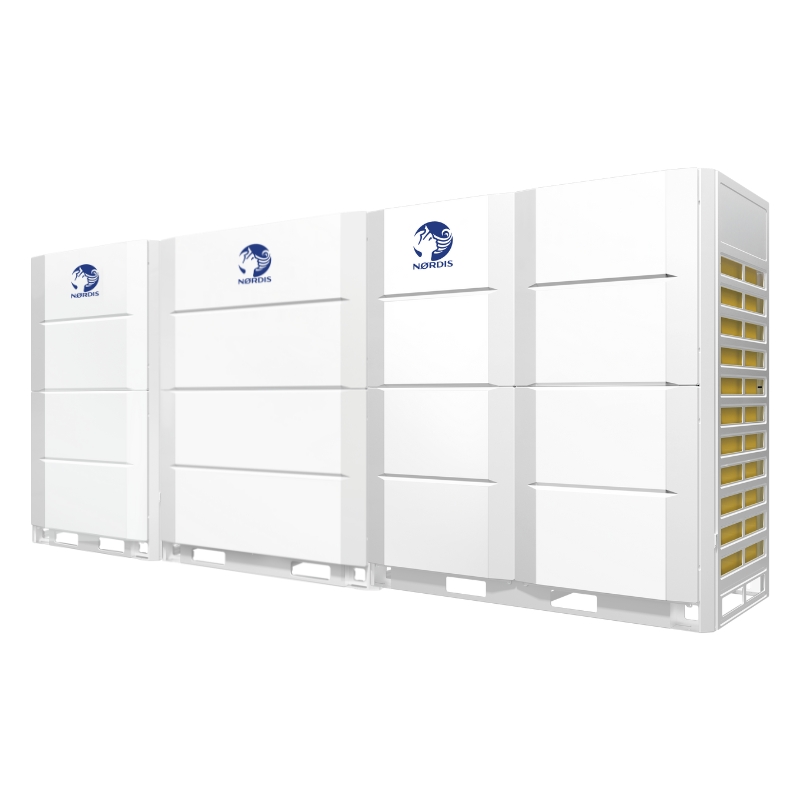 Kompaktiška konstrukcija ir itin ilgos trasos galimybė – iki 1100 metrų – suteikia NØRDIS VRF sistemoms išskirtinį lankstumą sudėtingiems pastatų išplanavimams. Viena sistema gali būti prijungta prie iki 80 vidinių įrenginių, o trijų krypčių vamzdžių prijungimo sprendimas (iš priekio, šono arba galo) leidžia lengvai atlikti montavimą net ribotose erdvėse.