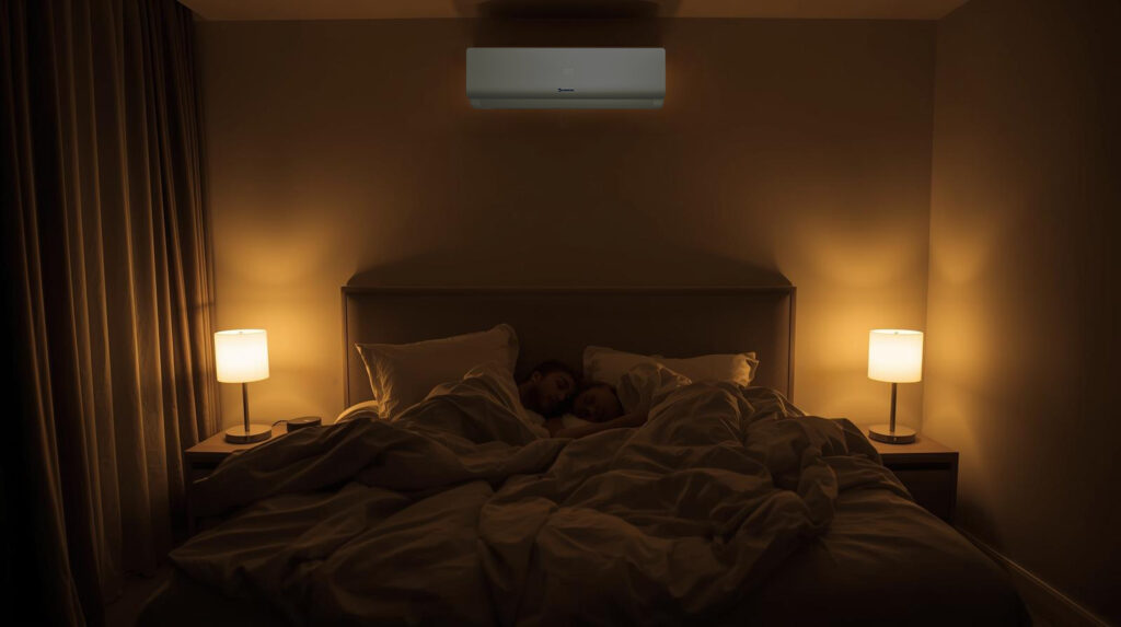 Ramiam nakties poilsiui skirta naktinio režimo funkcija, kuri kas 60 minučių automatiškai pakoreguoja temperatūrą 1–2 °C, palaikydama malonų komfortą visos nakties metu. Be to, oro kondicionierius padeda reguliuoti patalpų drėgmę, todėl galima efektyviai džiovinti drabužius net lietingomis dienomis.